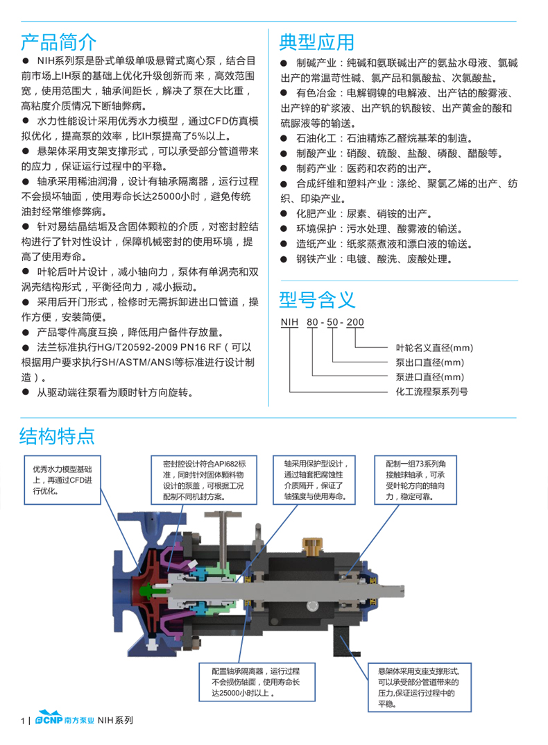 非自吸單級臥式離心泵,軸向入口,徑向出口;采用后開門式結構設計,配制加長節聯軸器,用戶無需拆除管道和電機進可進行維修;整泵符合GB/T5656 離心泵(II)設計要求;