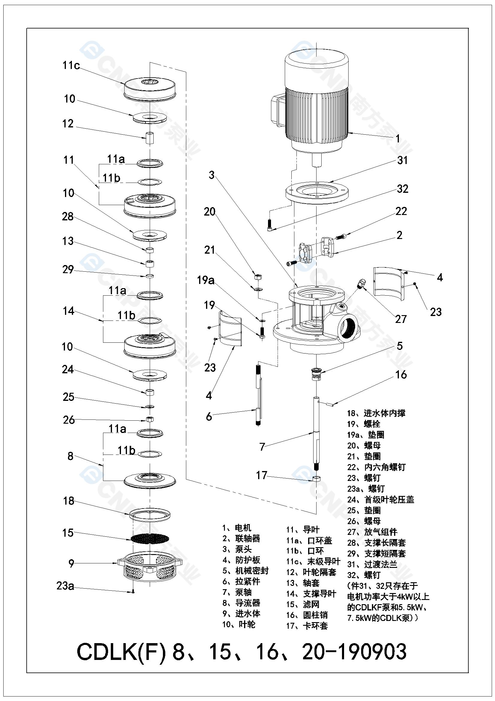 需要南方泵CDLK15-90/9爆炸圖CAD文件 請加銷售人員微信索取