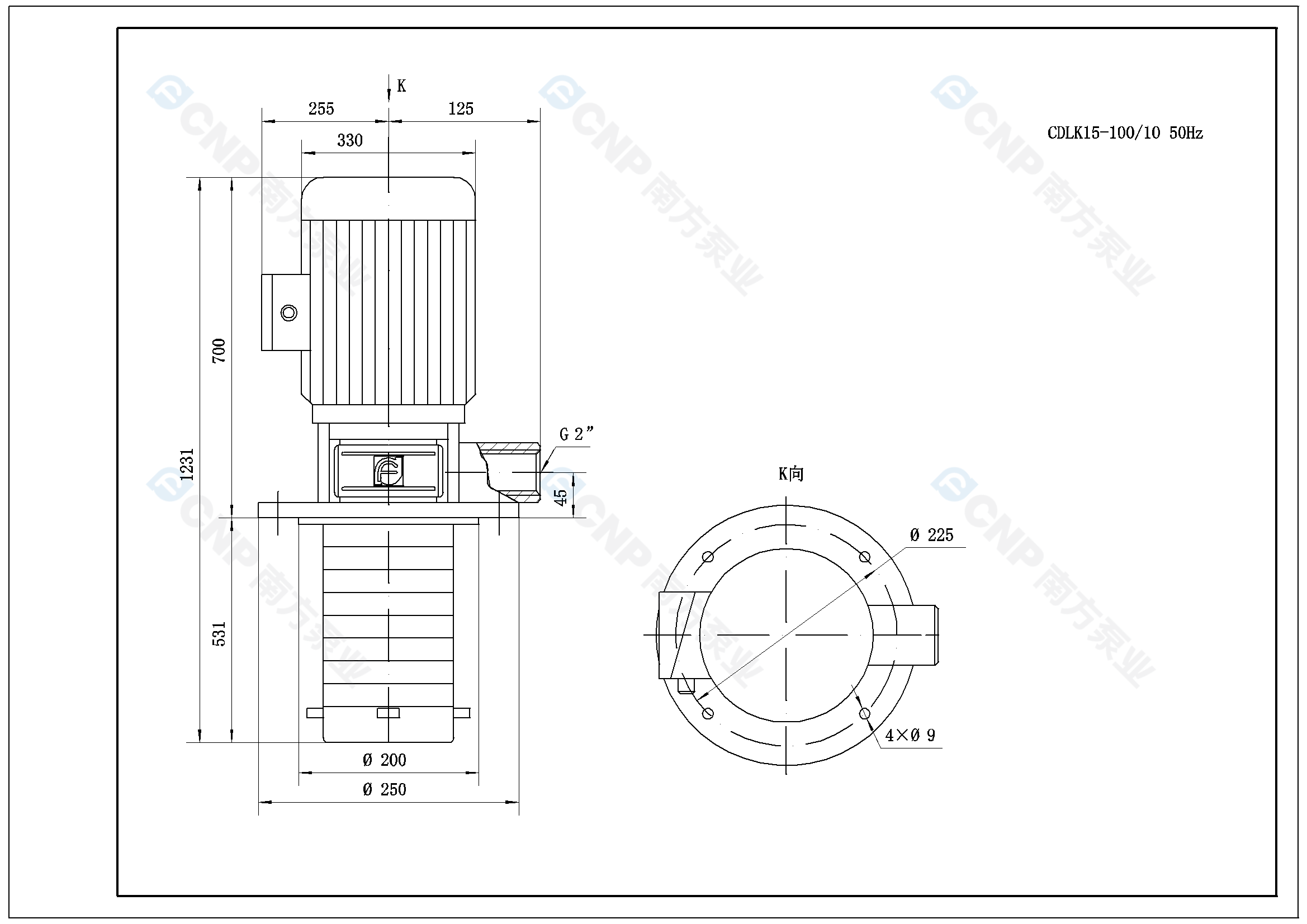 需要南方泵CDLK15-100/10外形CAD文件 請加銷售人員微信索取