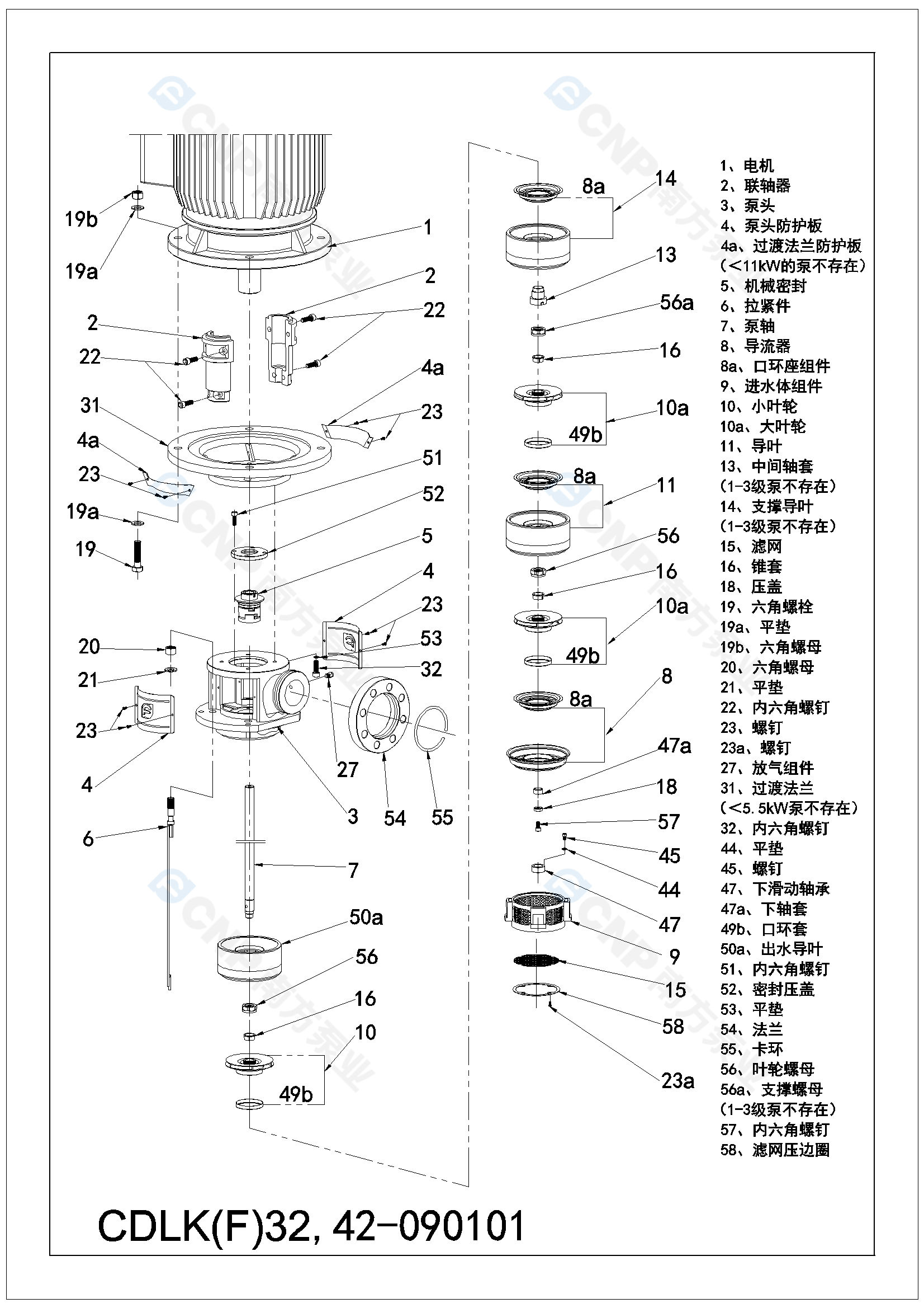 需要南方泵CDLK42-90/9-2爆炸圖CAD文件 請加銷售人員微信索取