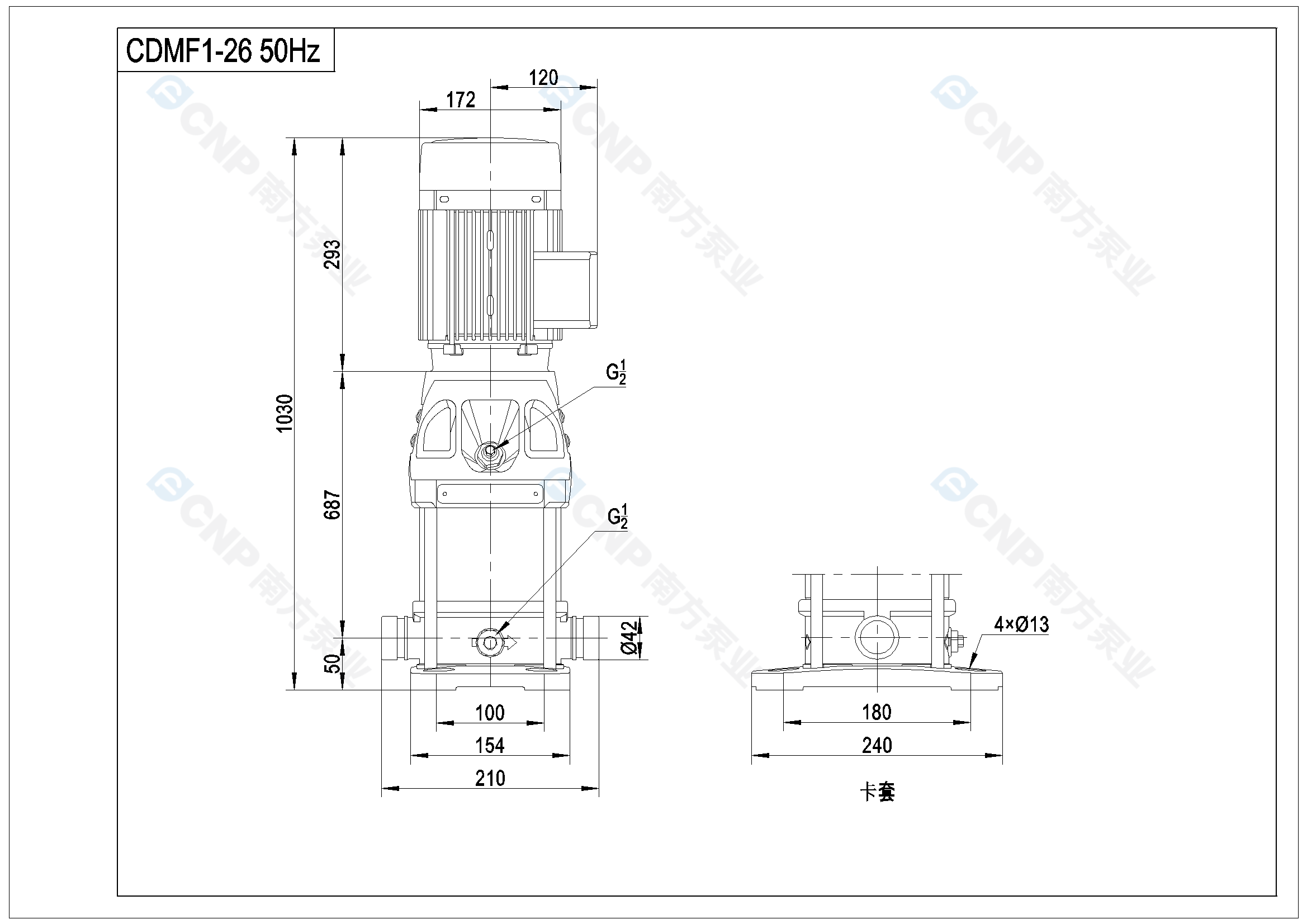 需要南方泵CDM1-26外形CAD文件 請加銷售人員微信索取