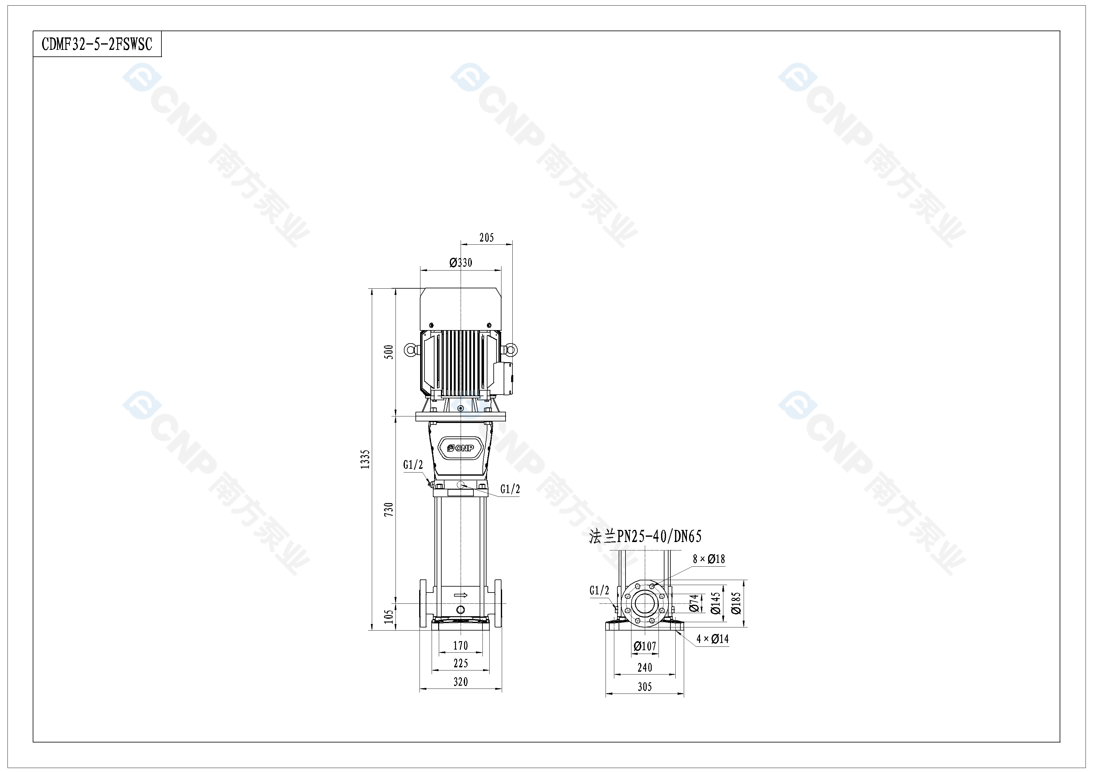 需要南方泵CDM32-5-2外形CAD文件 請加銷售人員微信索取
