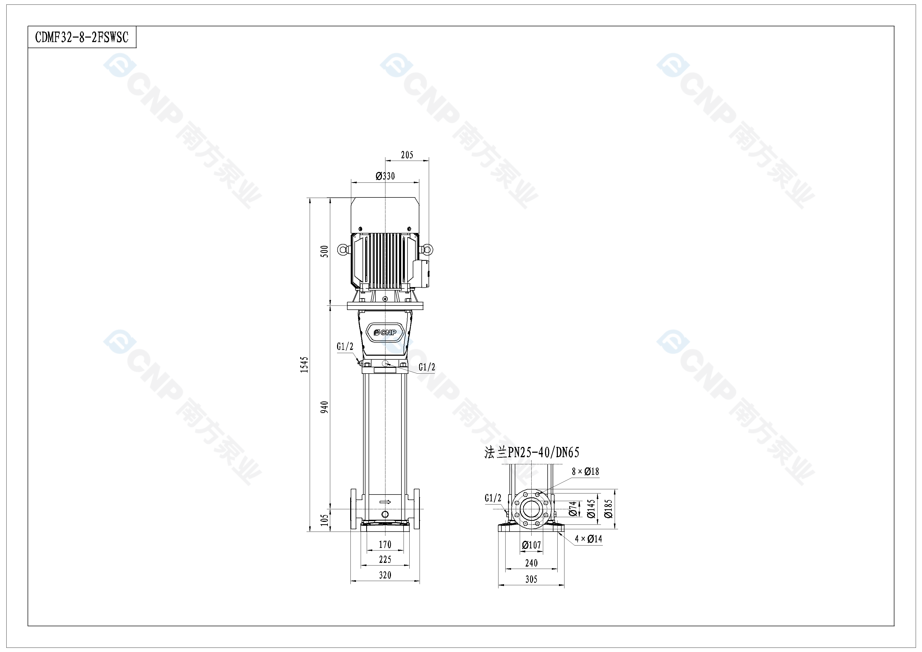 需要南方泵CDM32-8-2外形CAD文件 請加銷售人員微信索取