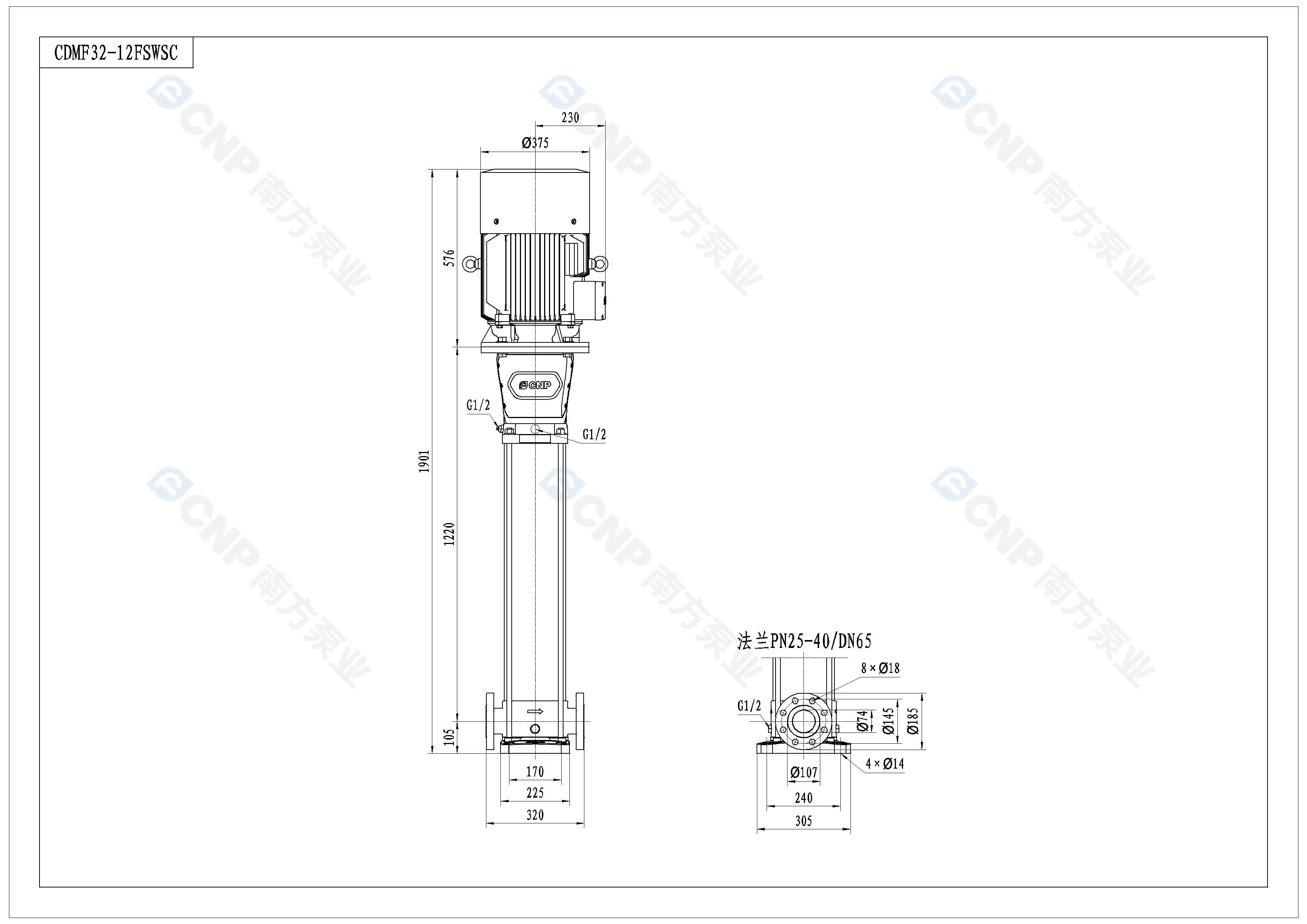 需要南方泵CDM32-12外形CAD文件 請加銷售人員微信索取