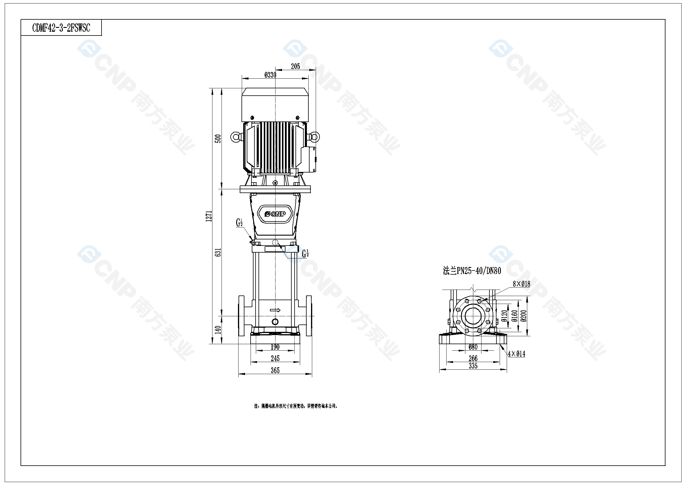 需要南方泵CDM42-3-2外形CAD文件 請加銷售人員微信索取