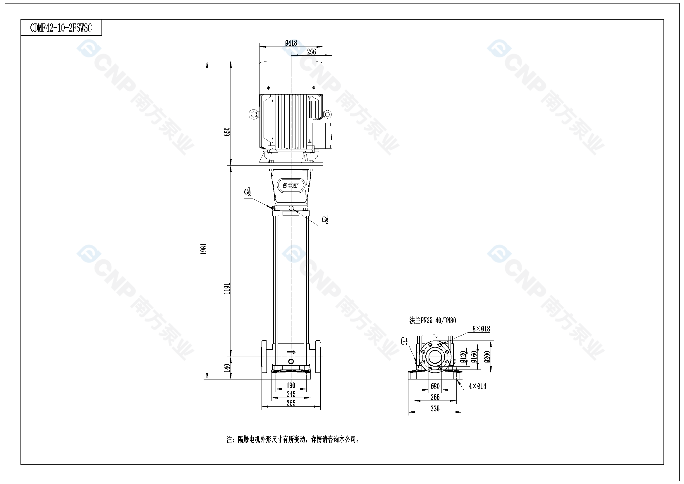 需要南方泵CDM42-10-2外形CAD文件 請加銷售人員微信索取