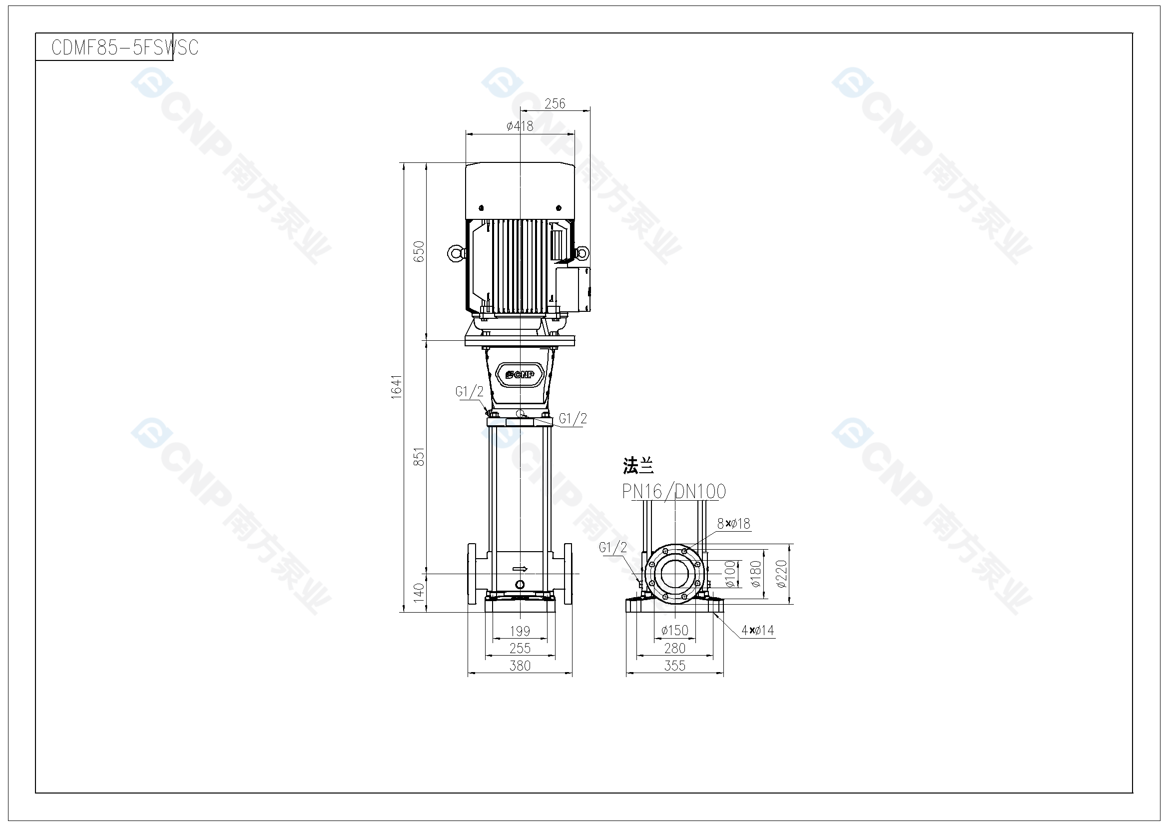需要南方泵CDM85-5外形CAD文件 請加銷售人員微信索取