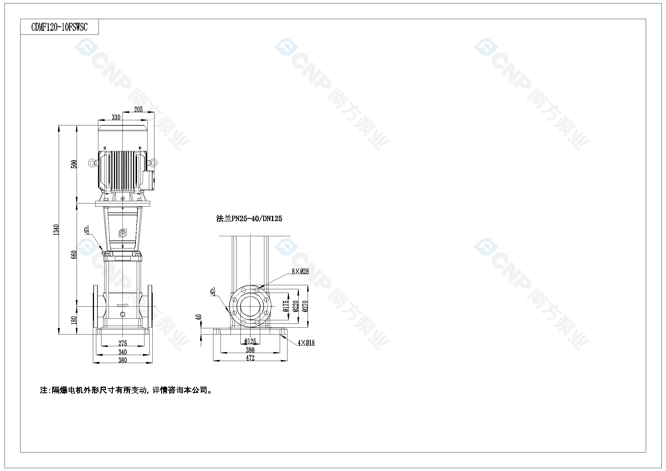 需要南方泵CDM120-1外形CAD文件 請加銷售人員微信索取