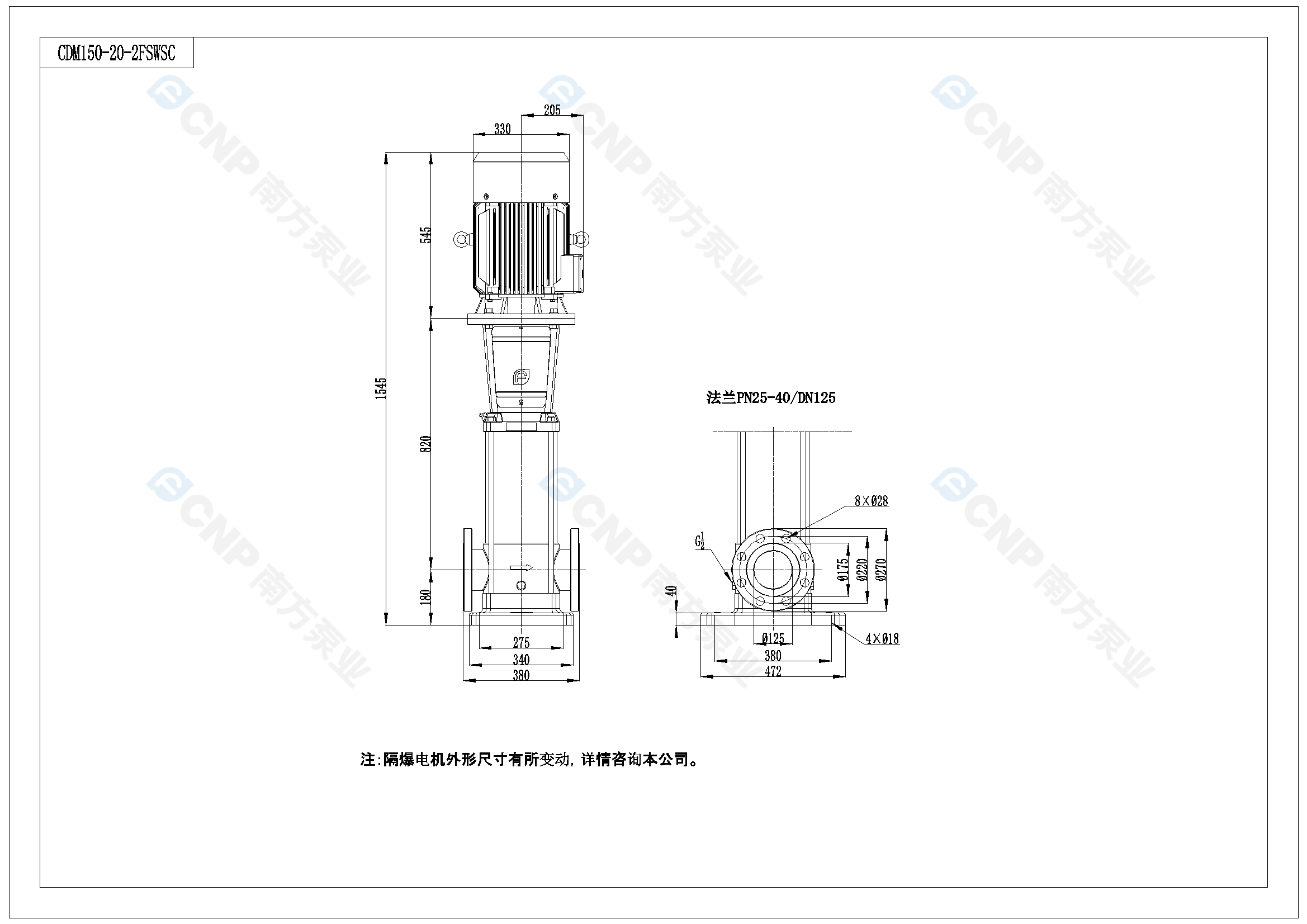 需要南方泵CDM150-2-2外形CAD文件 請加銷售人員微信索取
