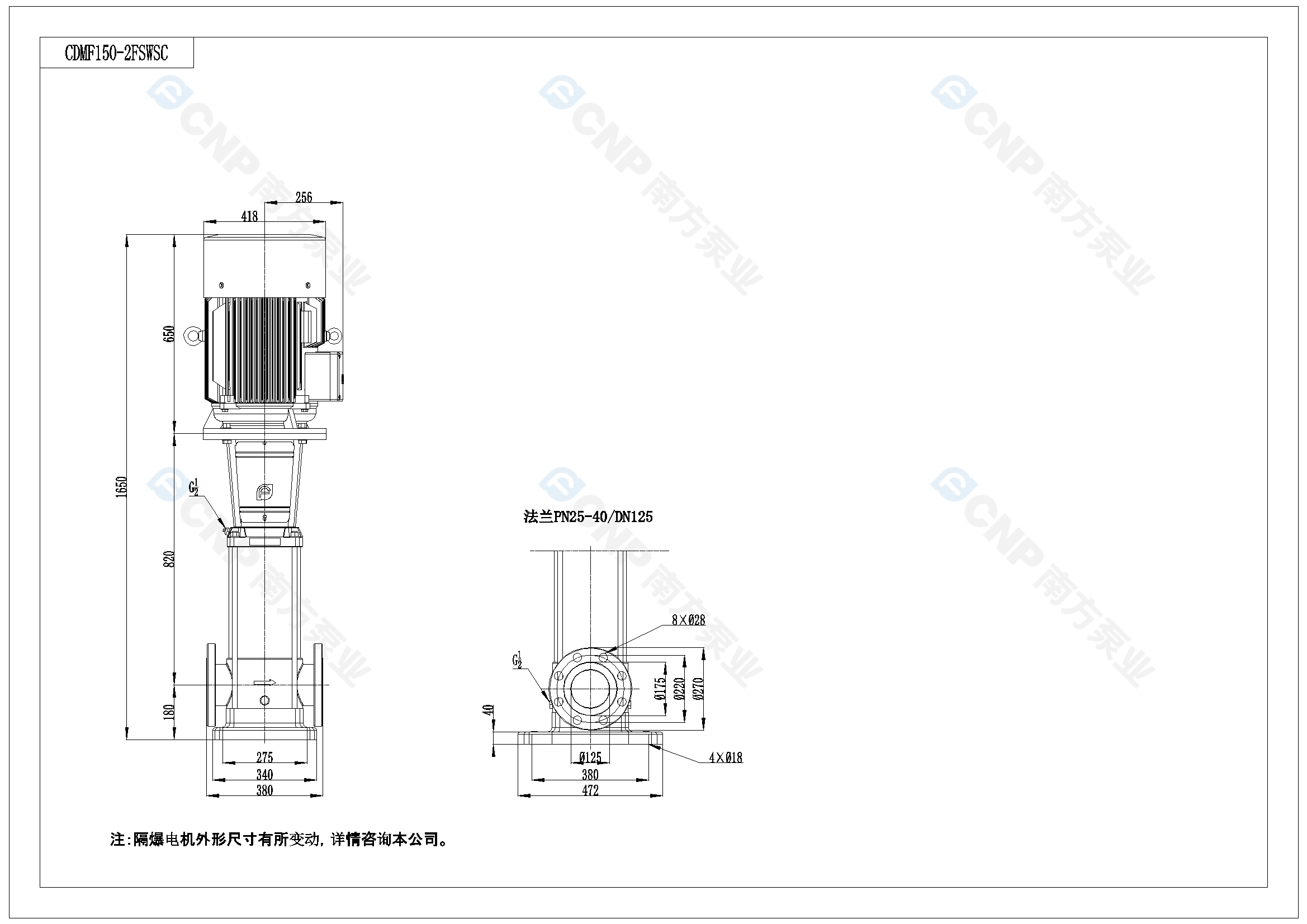 需要南方泵CDM150-2外形CAD文件 請加銷售人員微信索取