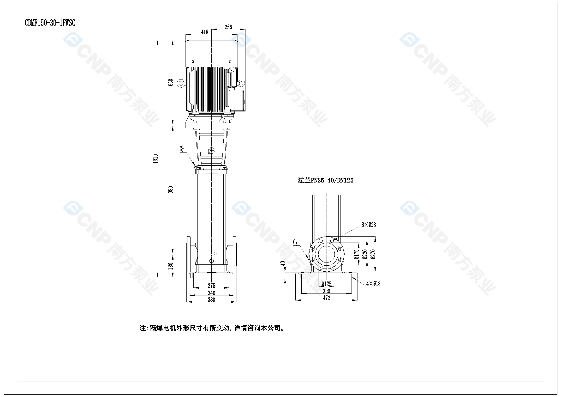 需要南方泵CDM150-3-1外形CAD文件 請加銷售人員微信索取