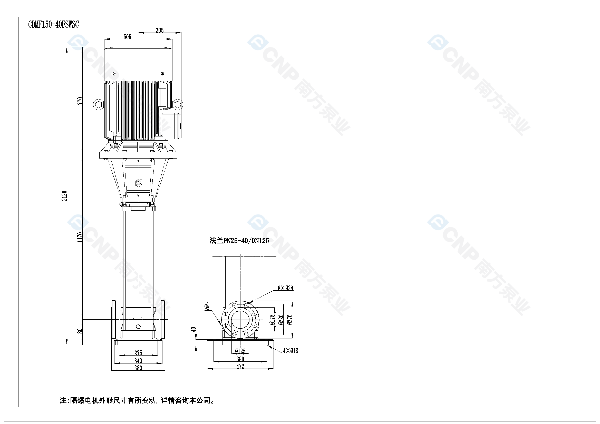 需要南方泵CDM150-4外形CAD文件 請加銷售人員微信索取