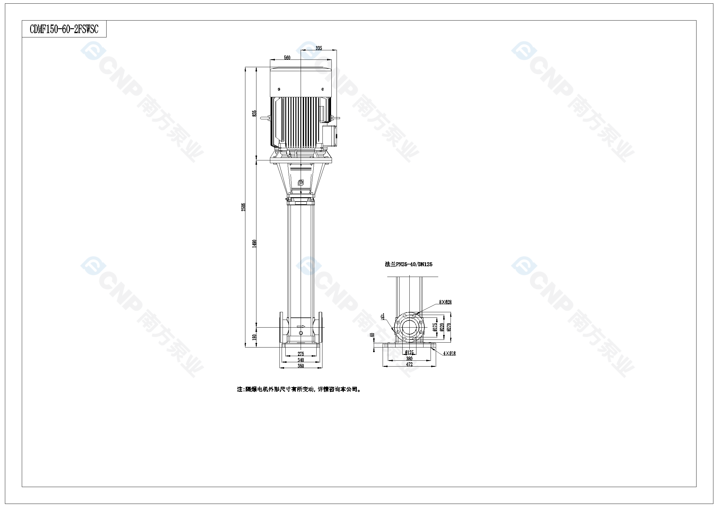 需要南方泵CDM150-6-2外形CAD文件 請加銷售人員微信索取