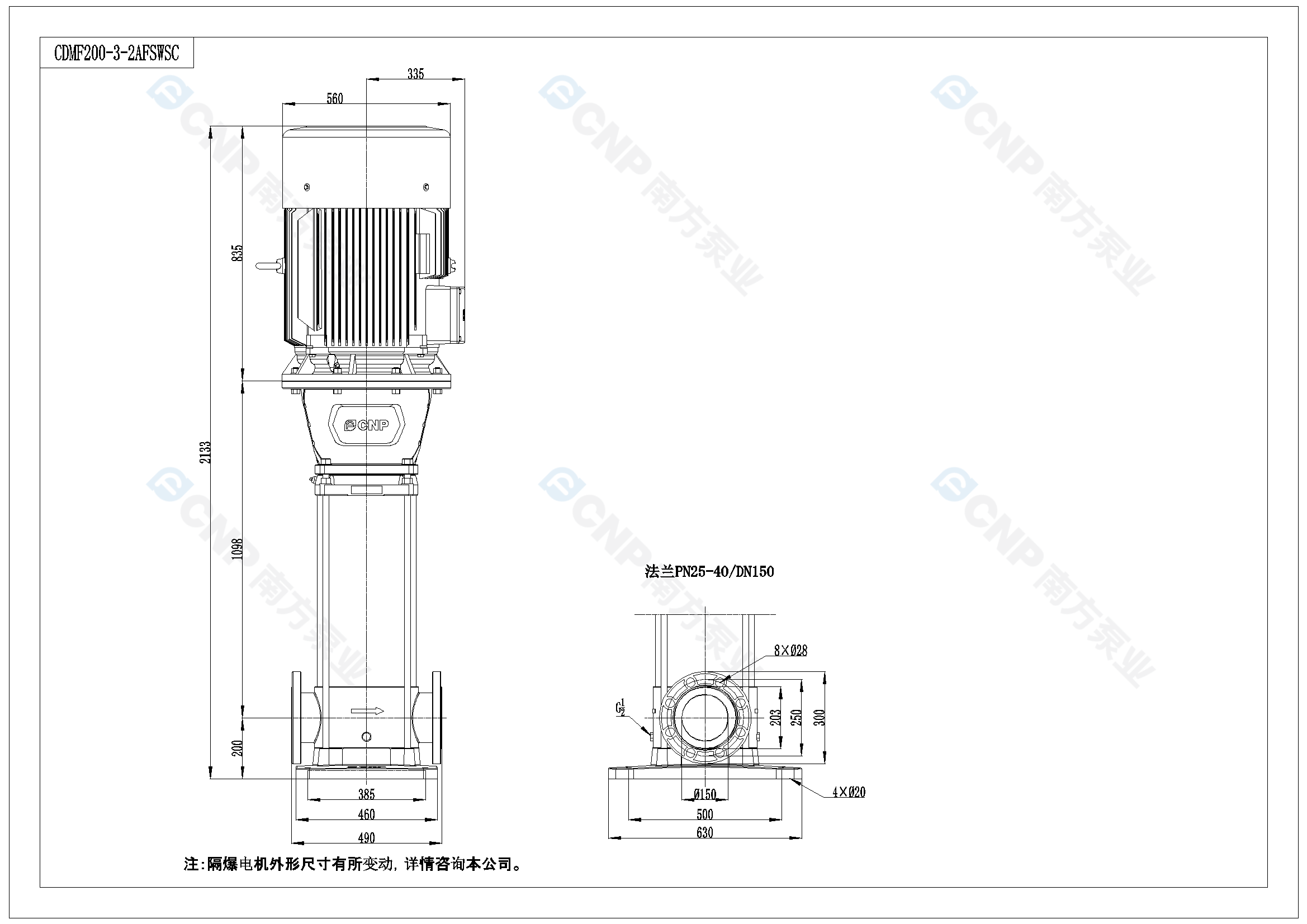 需要南方泵CDM200-3-2A外形CAD文件 請加銷售人員微信索取