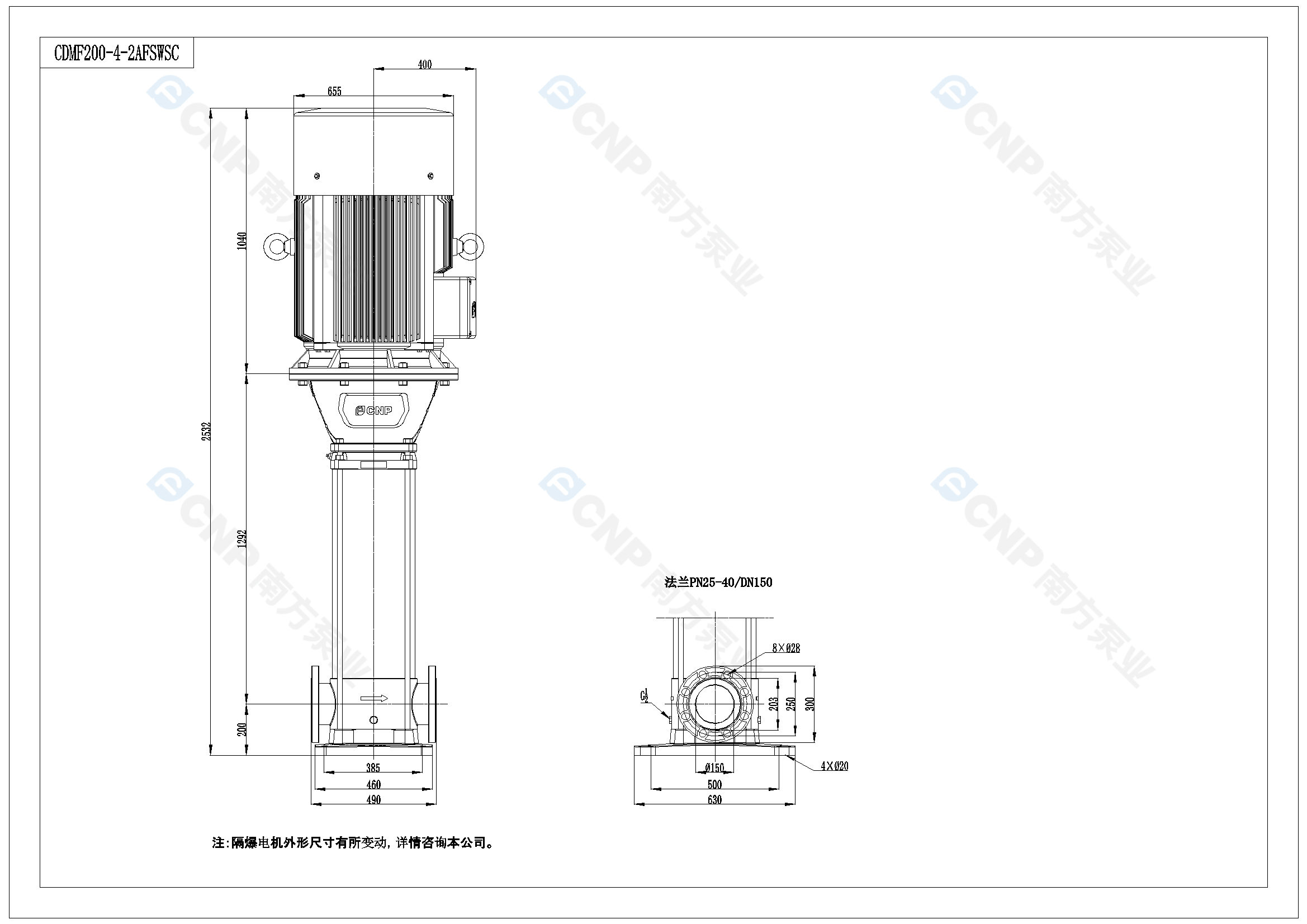 需要南方泵CDM200-4-2A外形CAD文件 請加銷售人員微信索取