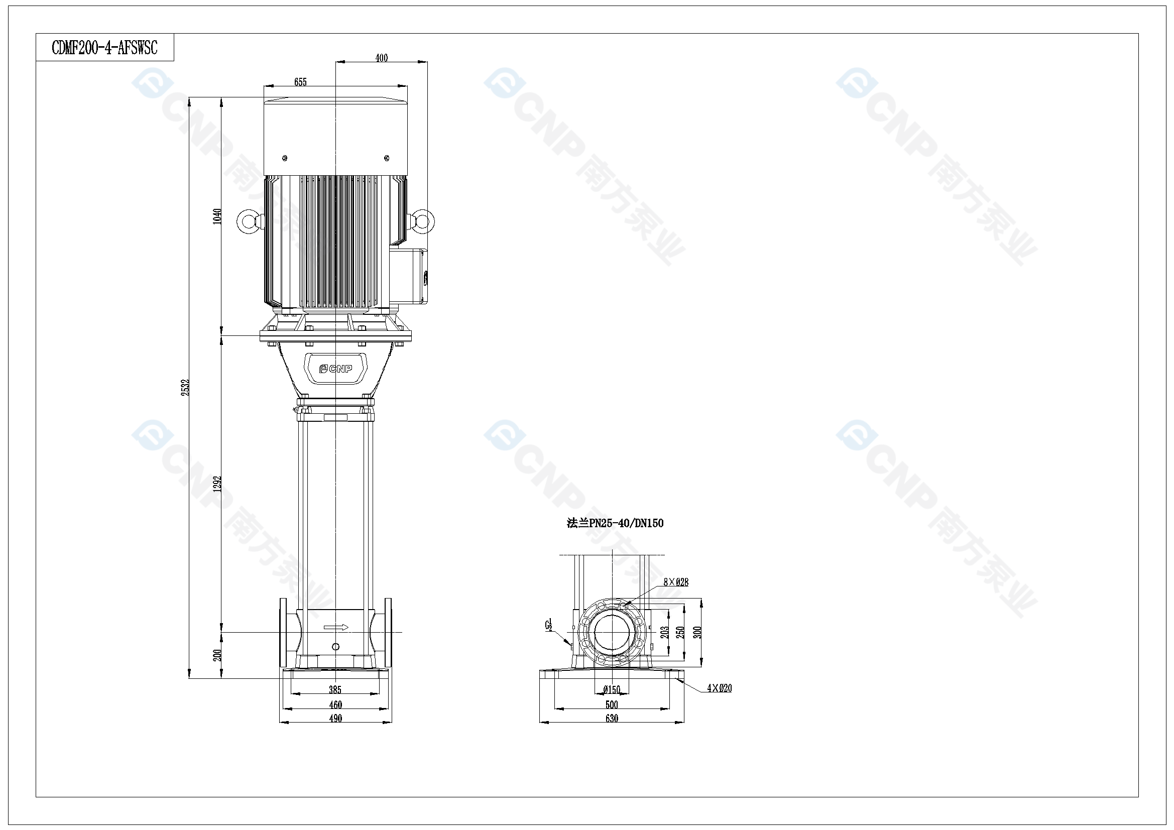 需要南方泵CDM200-4-A外形CAD文件 請加銷售人員微信索取