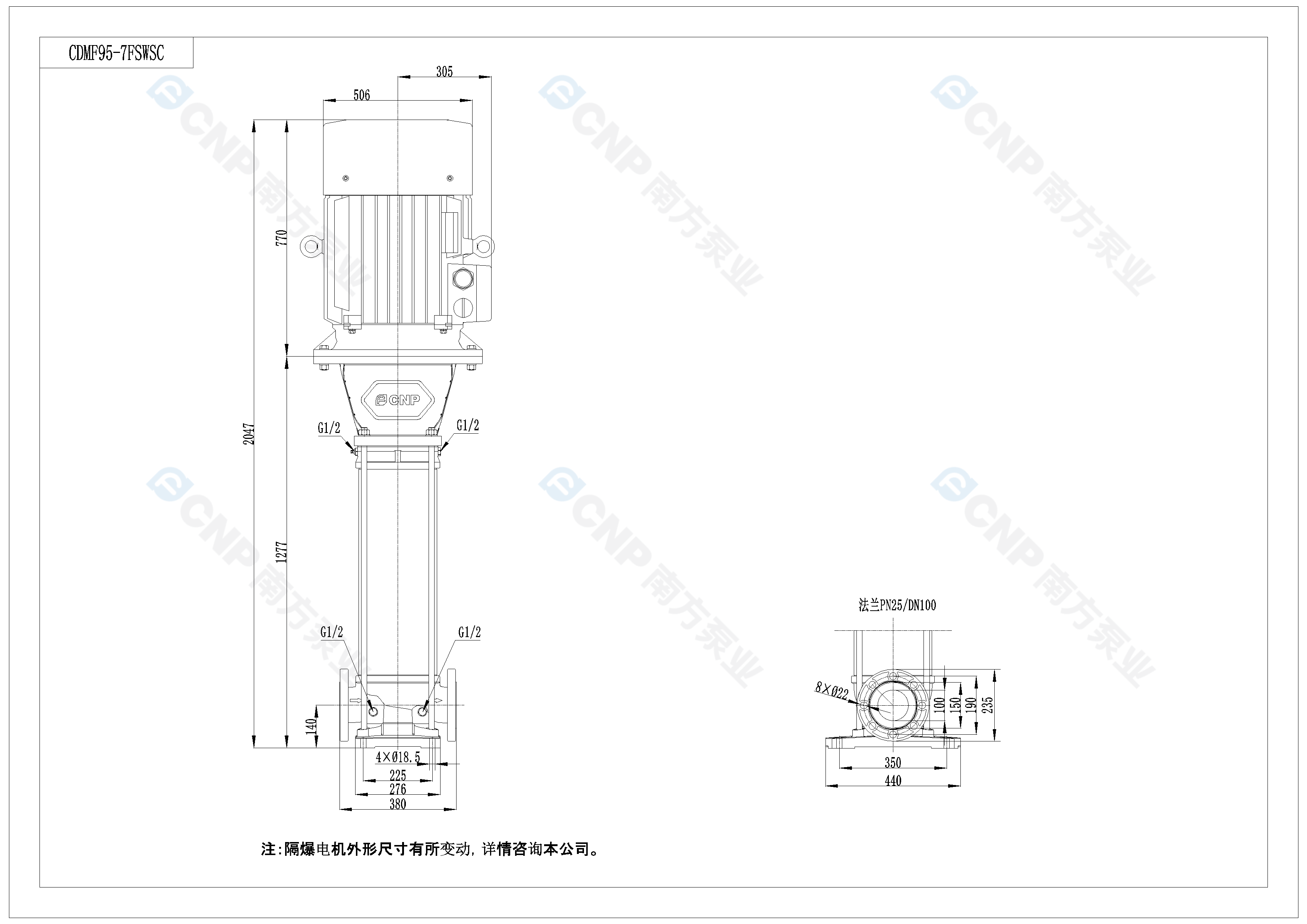 需要南方泵CDM95-7外形CAD文件 請加銷售人員微信索取