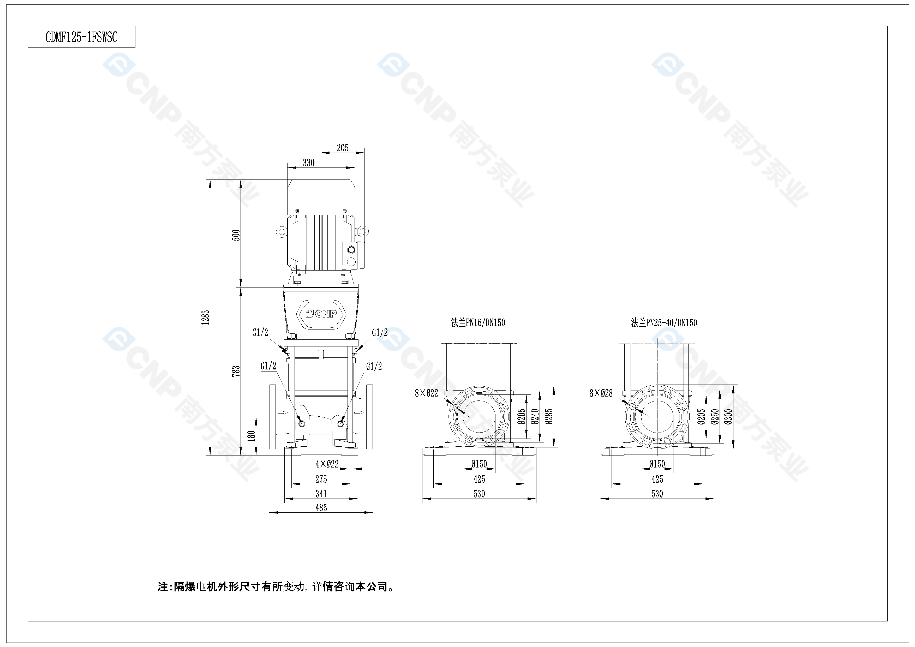 需要南方泵CDM125-1外形CAD文件 請加銷售人員微信索取