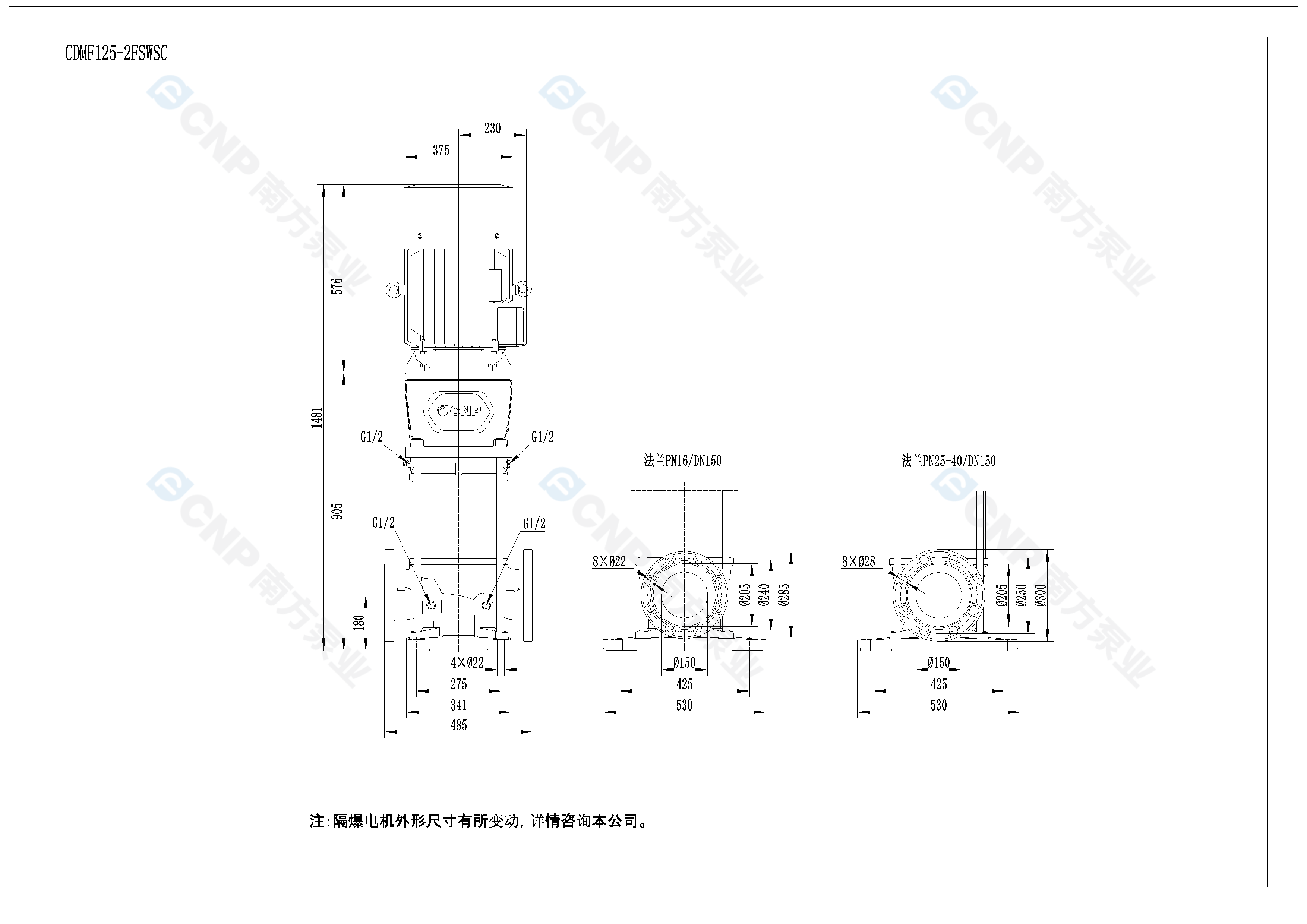 需要南方泵CDM125-2外形CAD文件 請(qǐng)加銷售人員微信索取