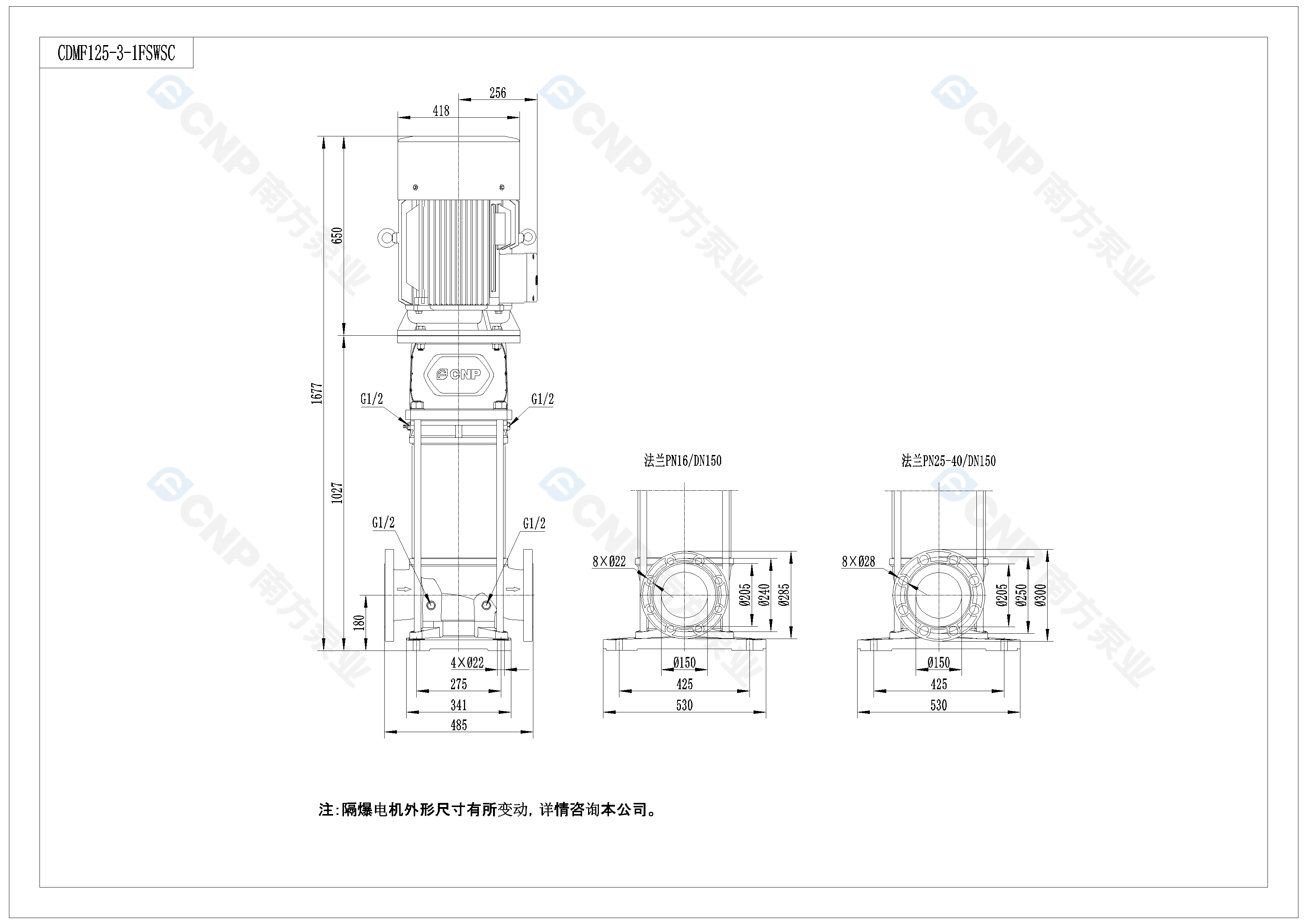 需要南方泵CDM125-3-1外形CAD文件 請加銷售人員微信索取