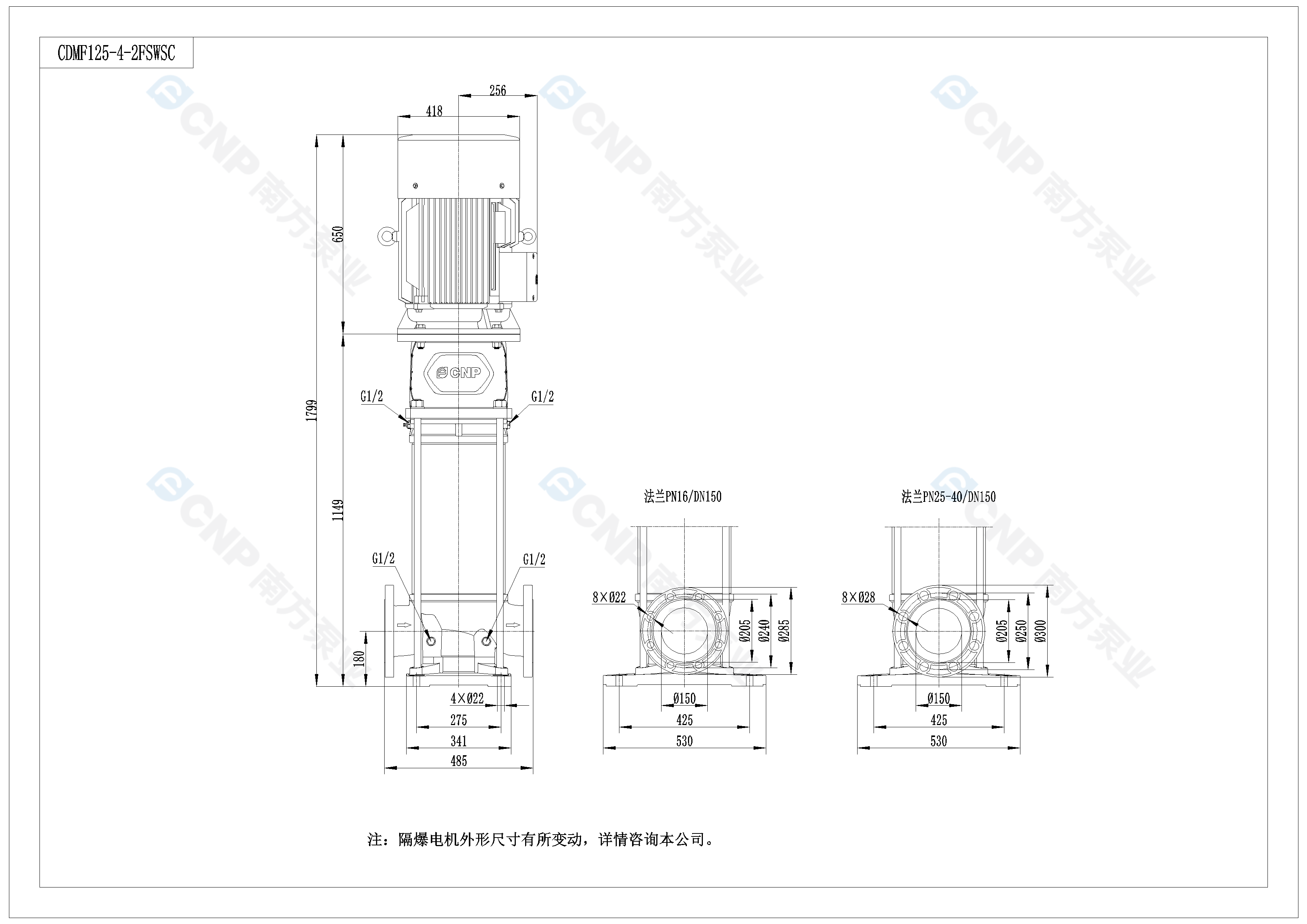 需要南方泵CDM125-4-2外形CAD文件 請加銷售人員微信索取