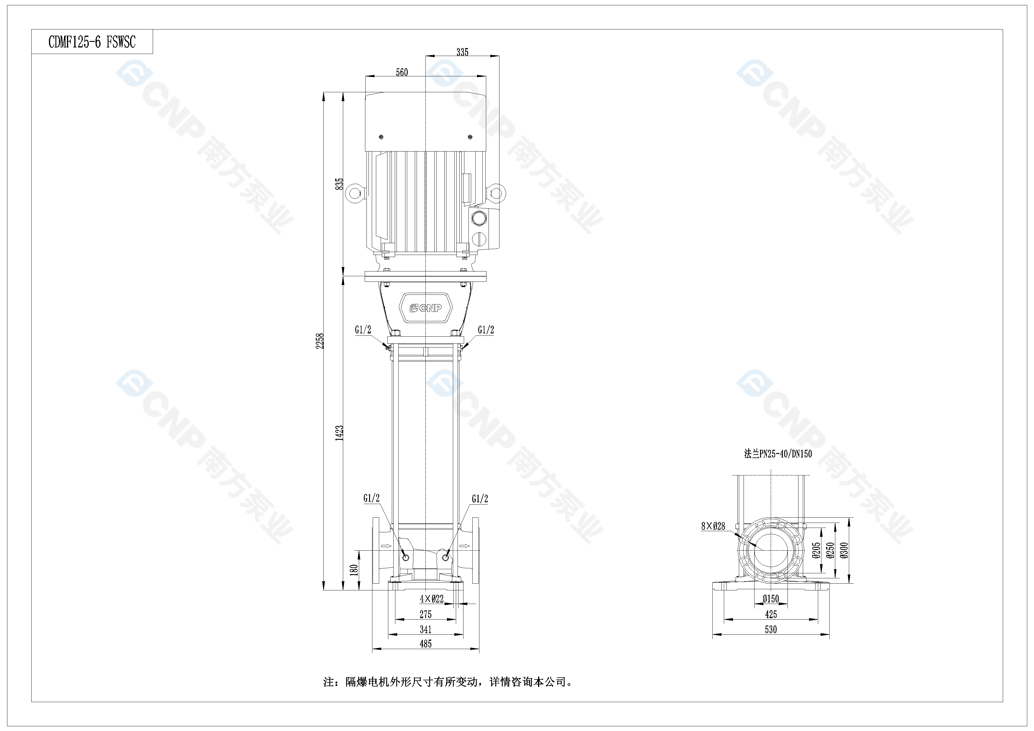需要南方泵CDM125-6外形CAD文件 請加銷售人員微信索取