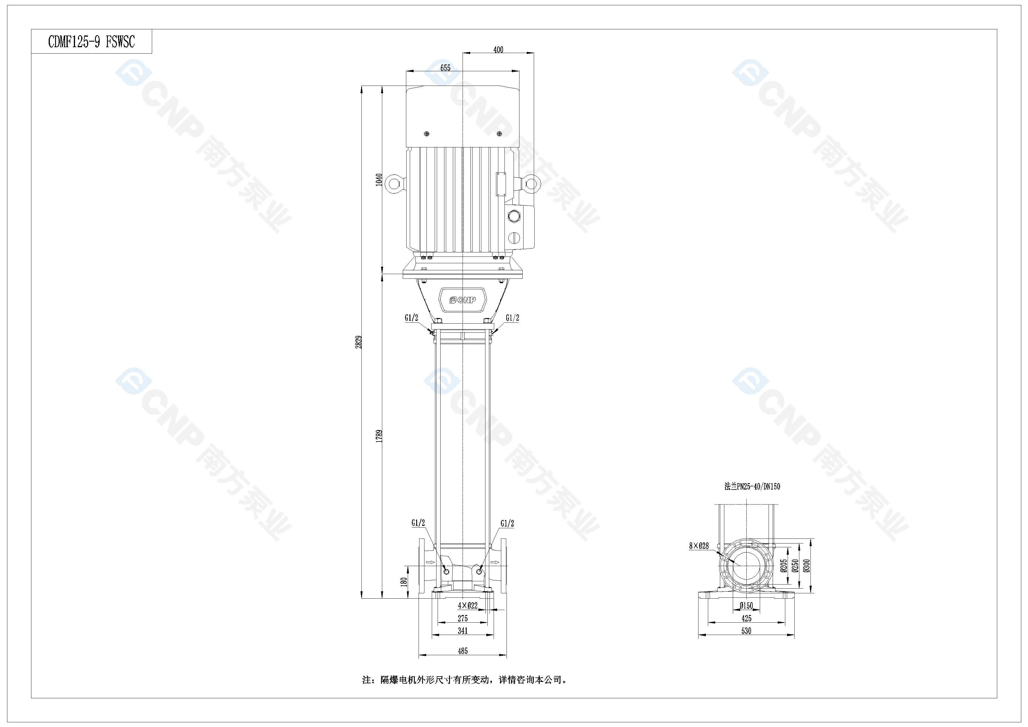 需要南方泵CDM125-9外形CAD文件 請加銷售人員微信索取