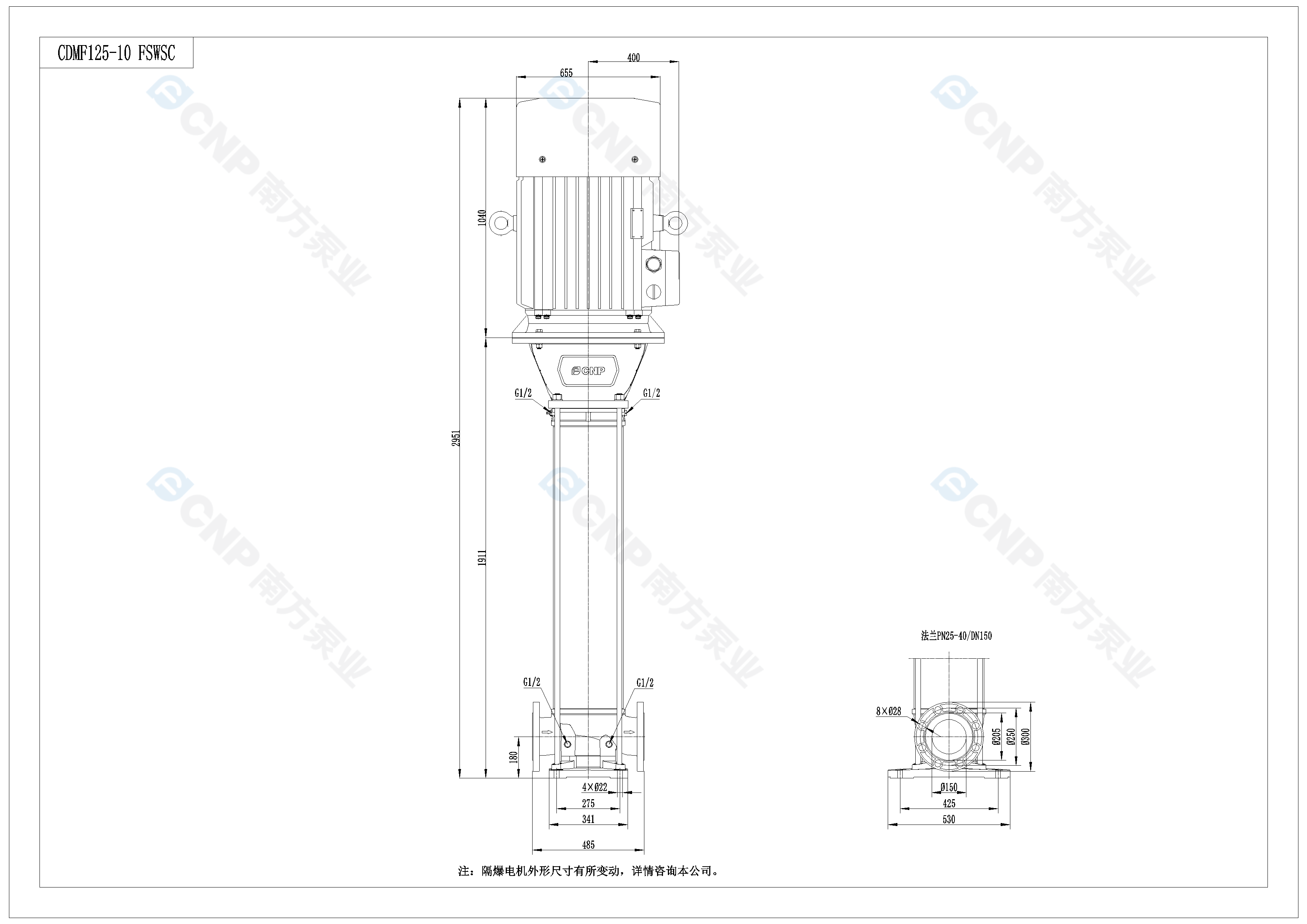 需要南方泵CDM125-10外形CAD文件 請加銷售人員微信索取