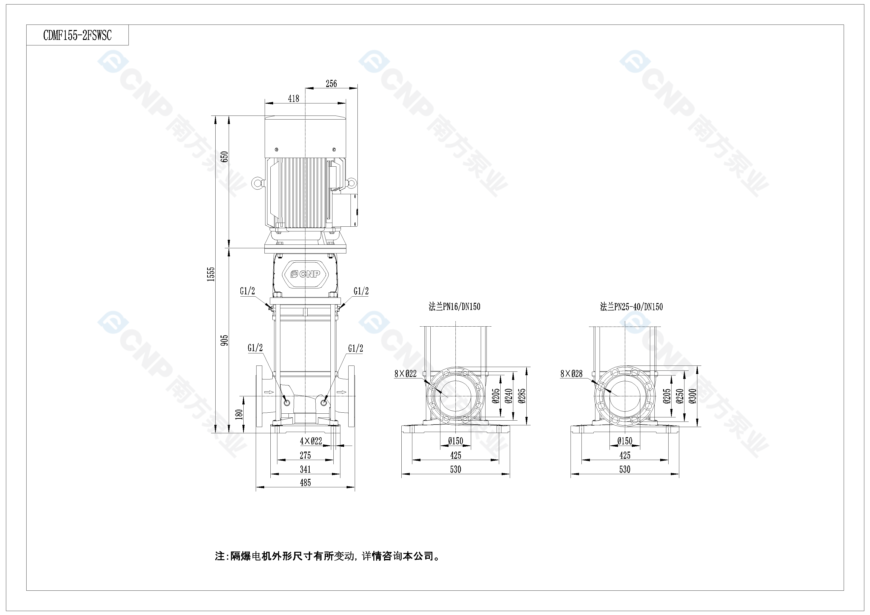 需要南方泵CDM155-2外形CAD文件 請加銷售人員微信索取