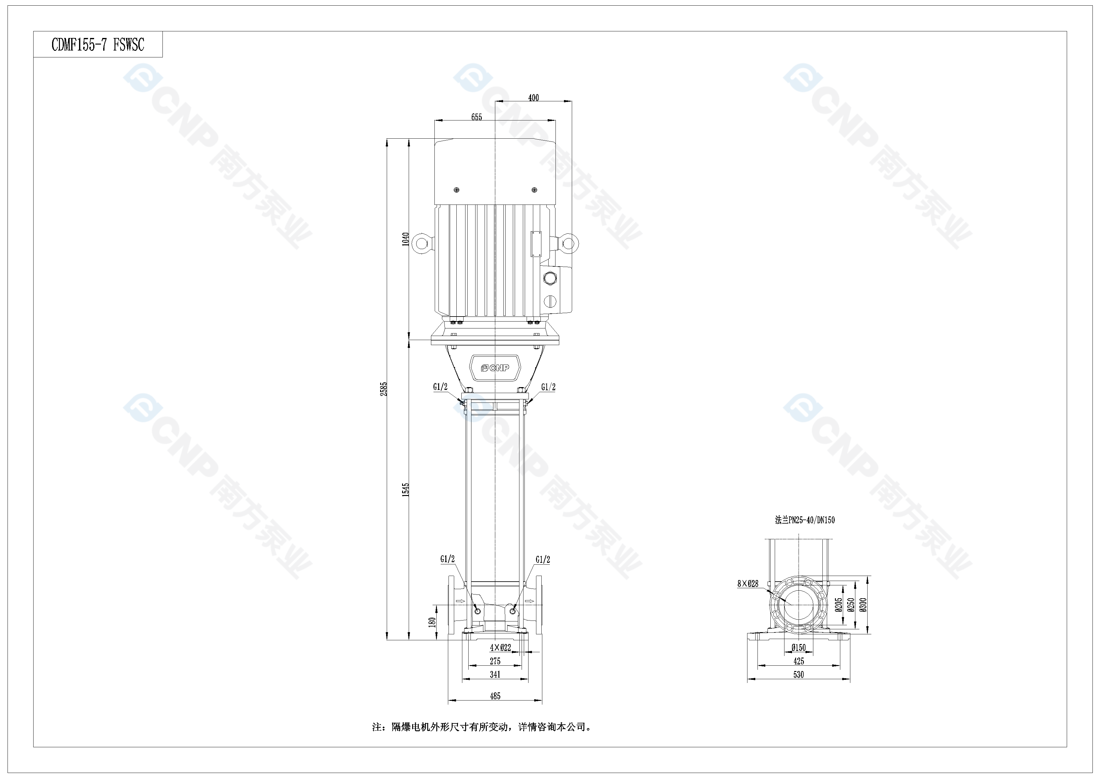 需要南方泵CDM155-7外形CAD文件 請加銷售人員微信索取