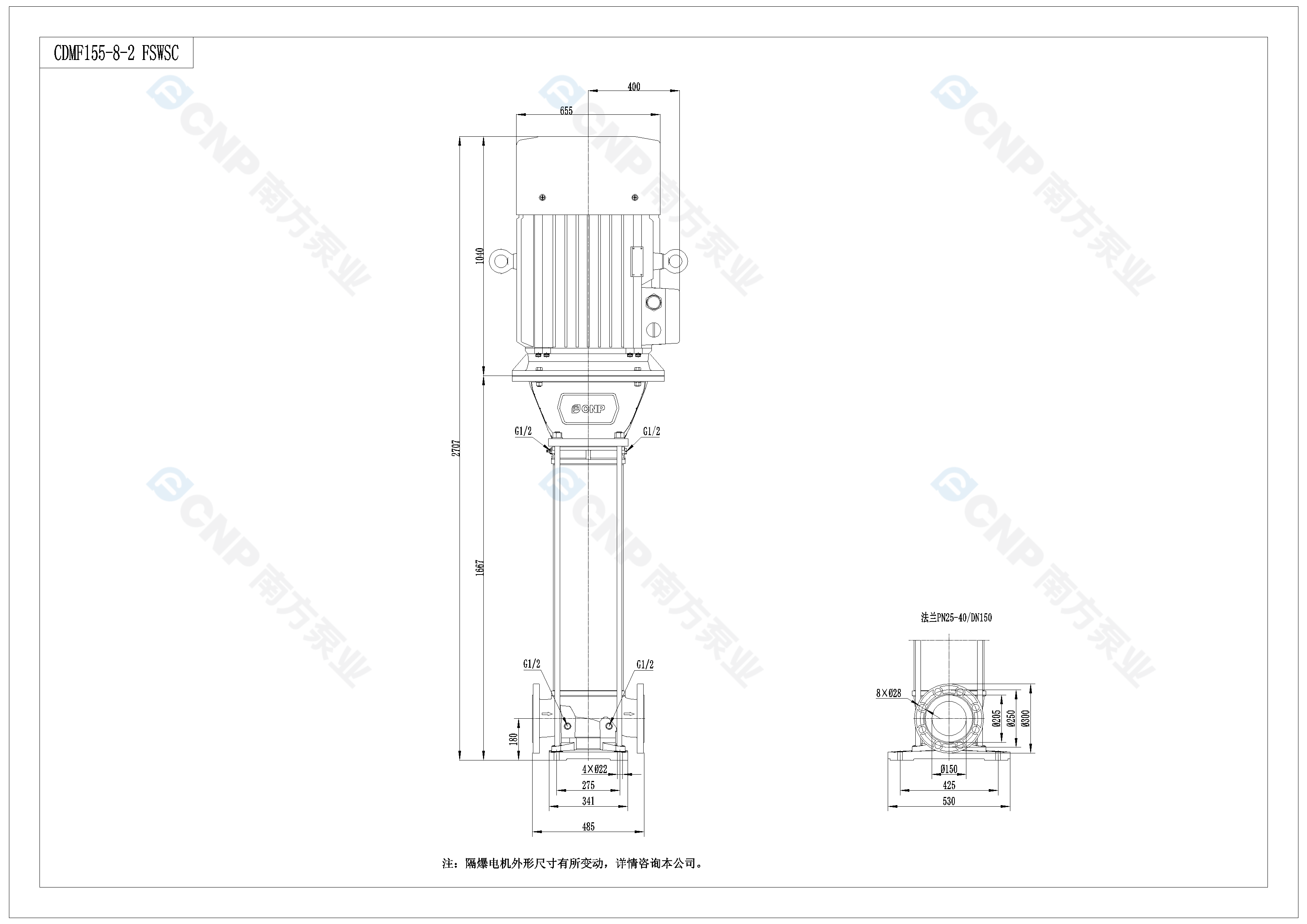 需要南方泵CDM155-8-2外形CAD文件 請加銷售人員微信索取