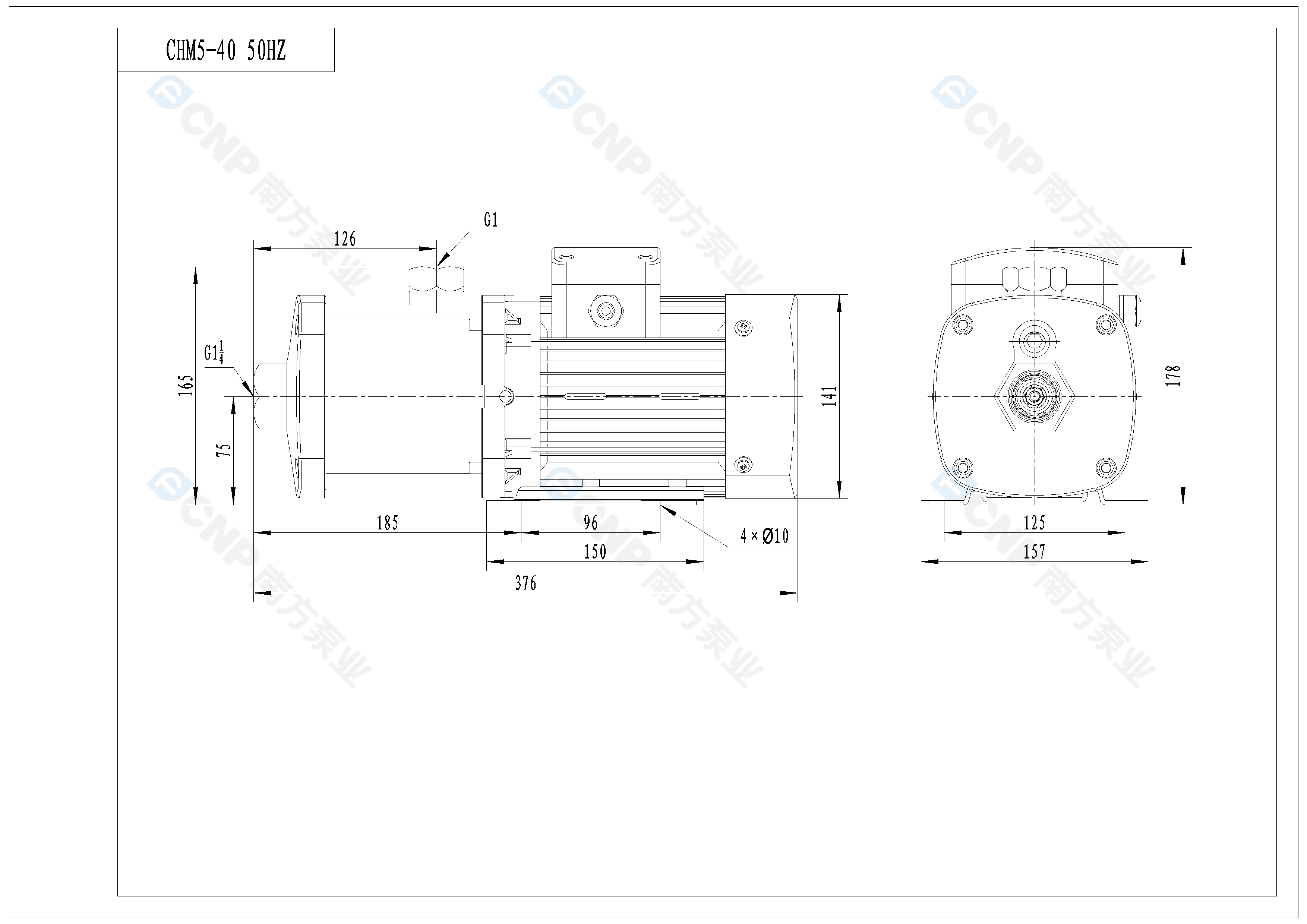 需要南方泵CHM5-40外形CAD文件 請加銷售人員微信索取