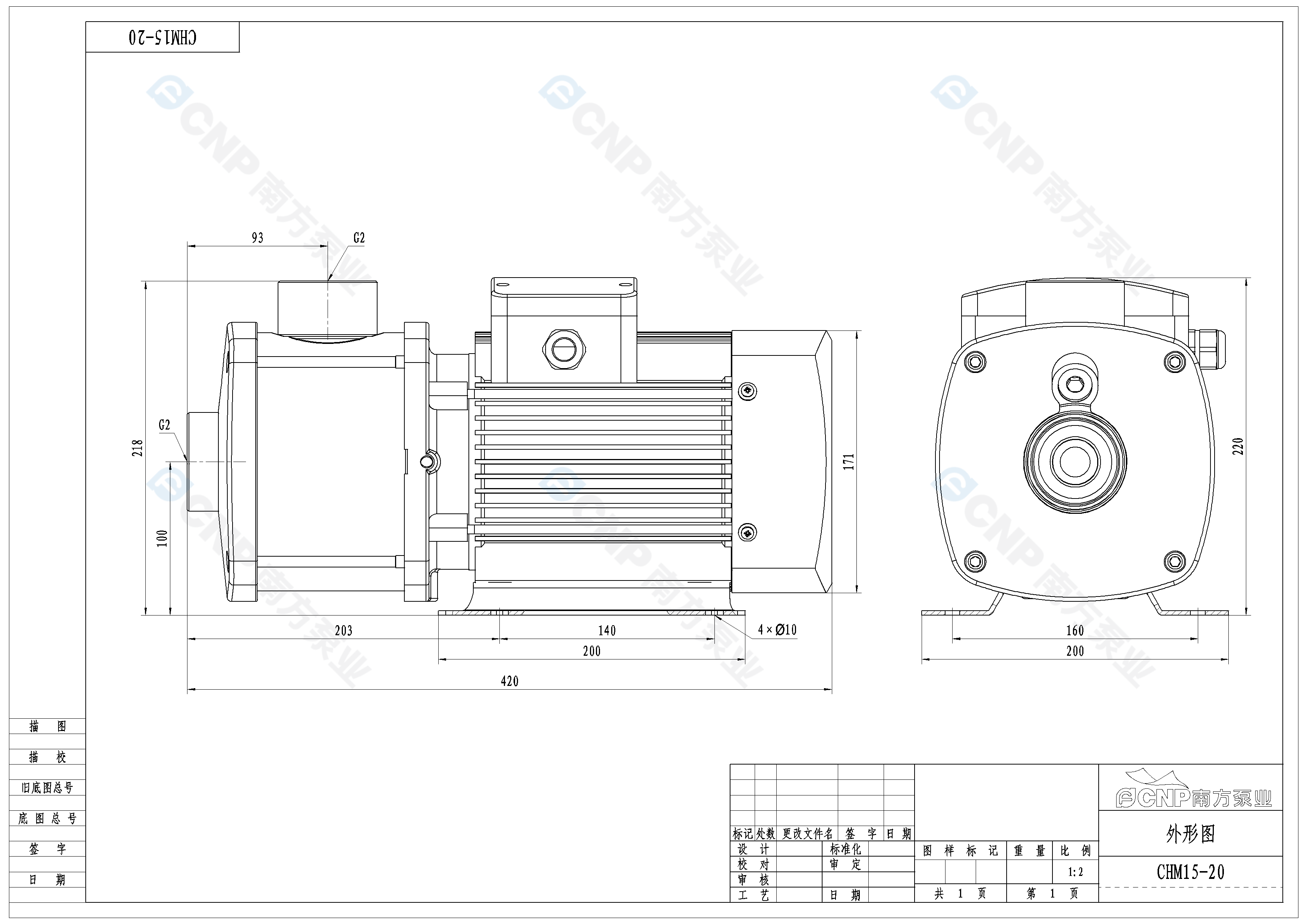 需要南方泵CHM15-20外形CAD文件 請(qǐng)加銷售人員微信索取