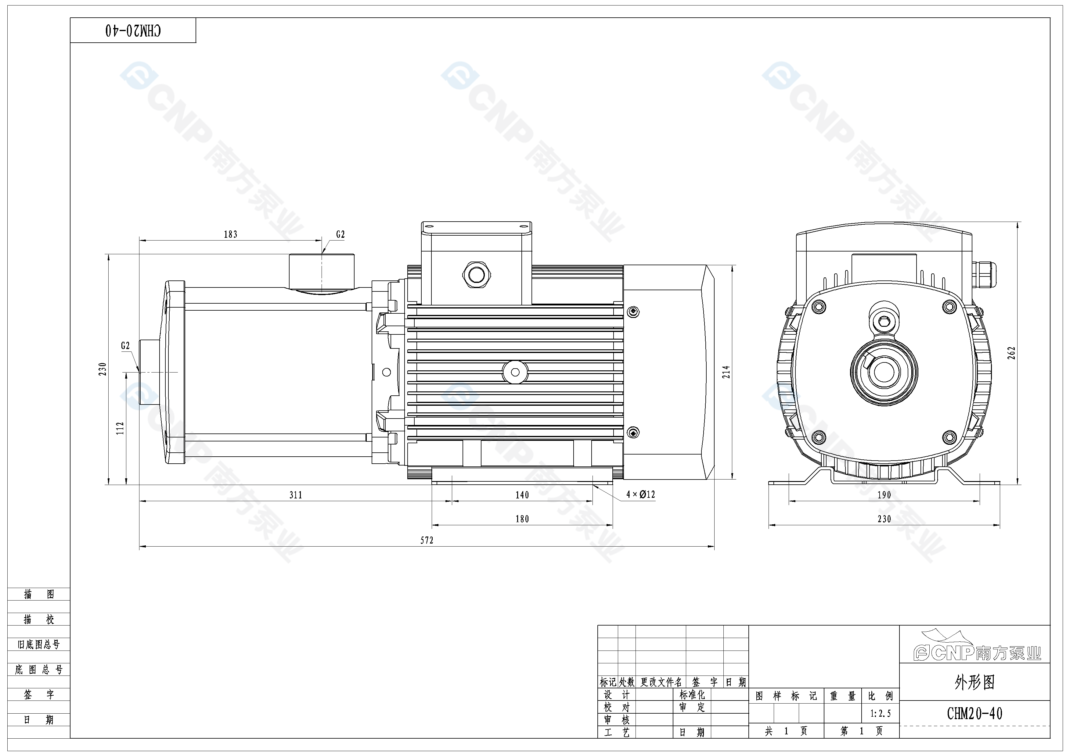 需要南方泵CHM20-40外形CAD文件 請加銷售人員微信索取