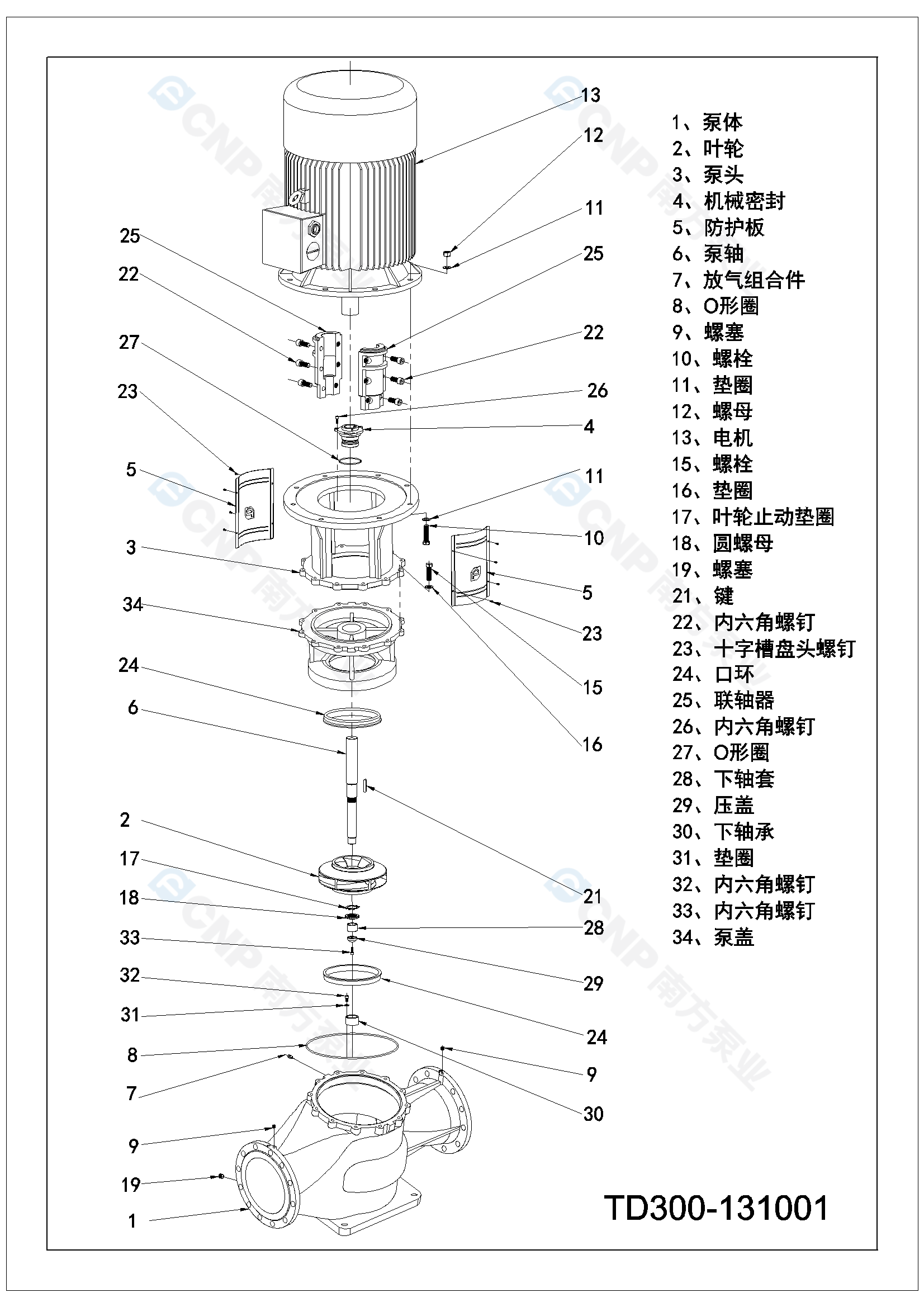 需要南方泵TD300-15/4爆炸圖CAD文件 請加銷售人員微信索取