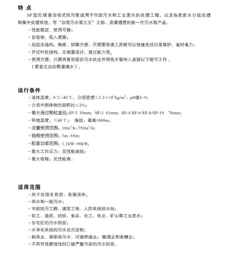 性能穩定、自吸快、吸入度高、維修方便、無堵塞,通過能力強、使用方便